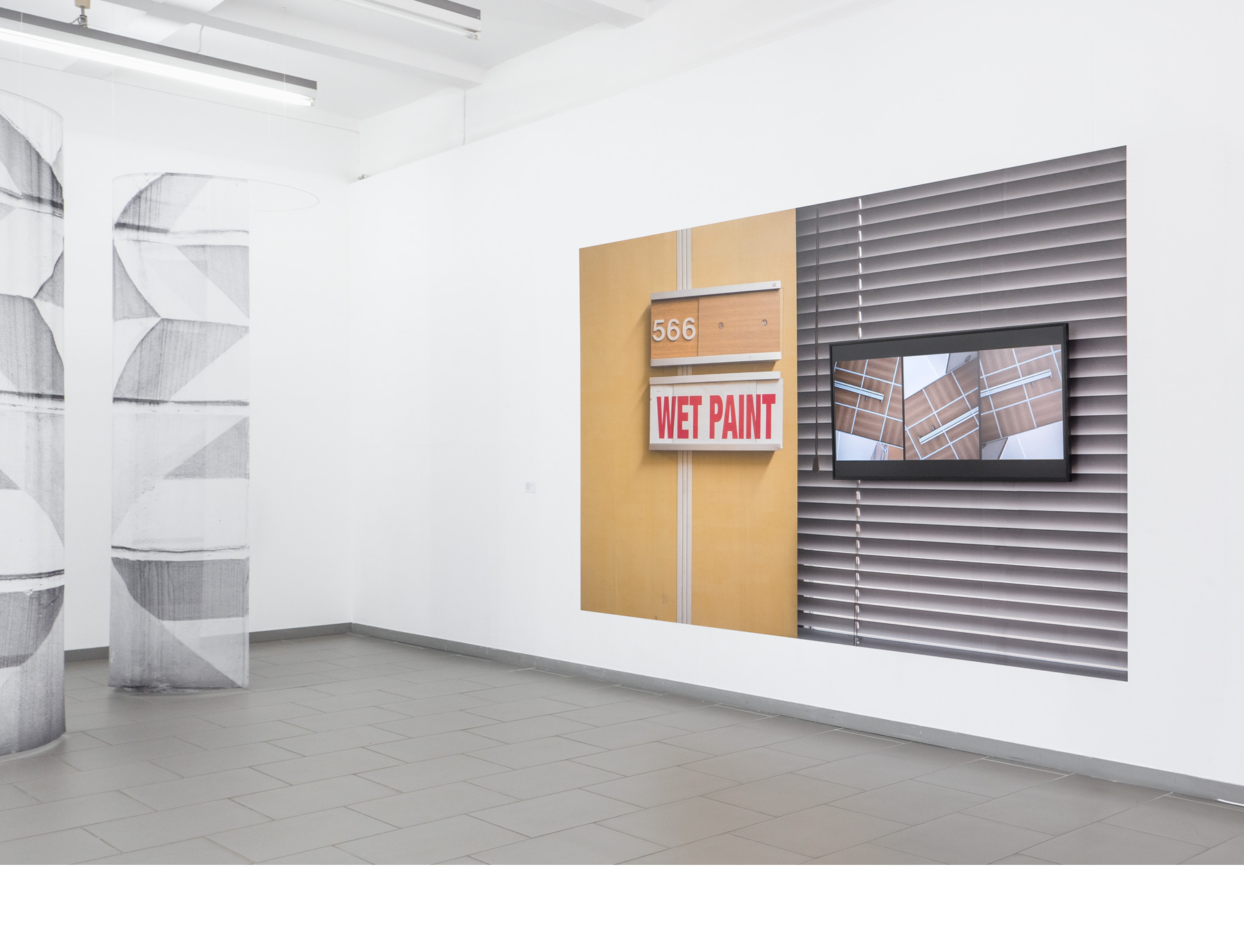 Monitor-Installation auf Fototapete, 210×300 cm, Haus am Kleistpark, Berlin, 2022